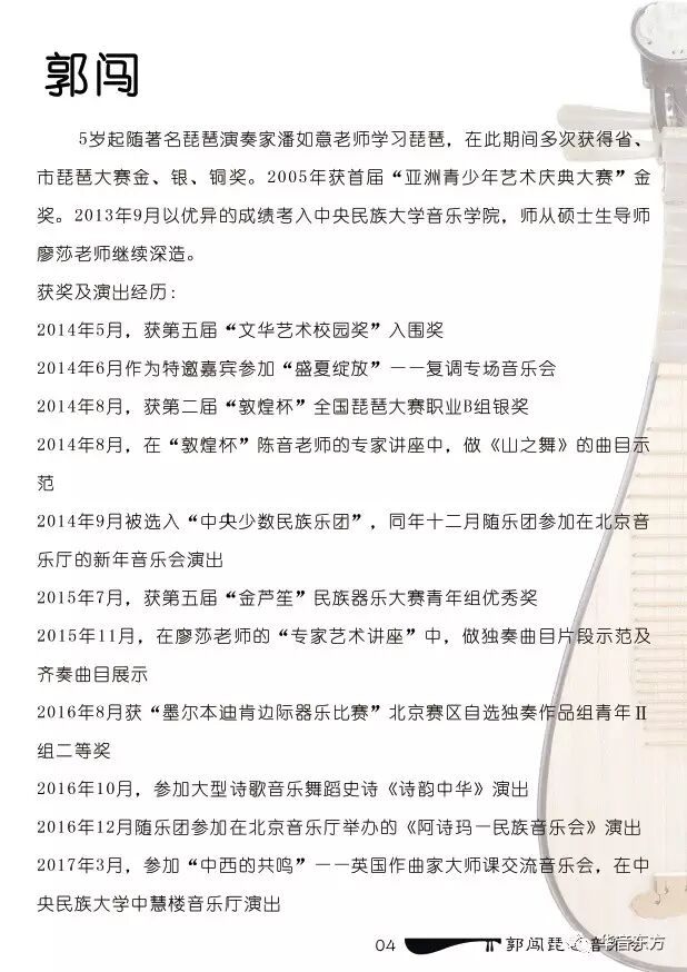 ,自幼习琴,,,师从硕士研究生导师、钢琴系主任崔锦兰教授。2013年,,研修古典钢琴及爵士钢琴。