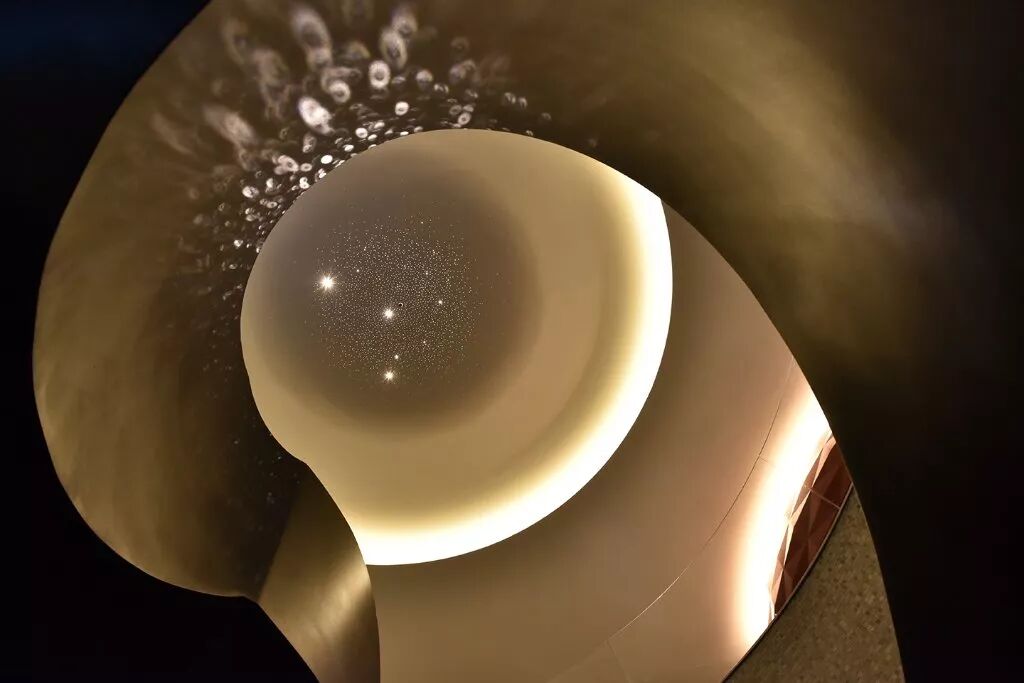 他们不仅请来了日本殿堂级设计师桥本夕纪夫设计了餐饮空间,还在空间内集合了包括首创的 4D 金属球装置在内 200 余位艺术家的作品,开创全球首例。