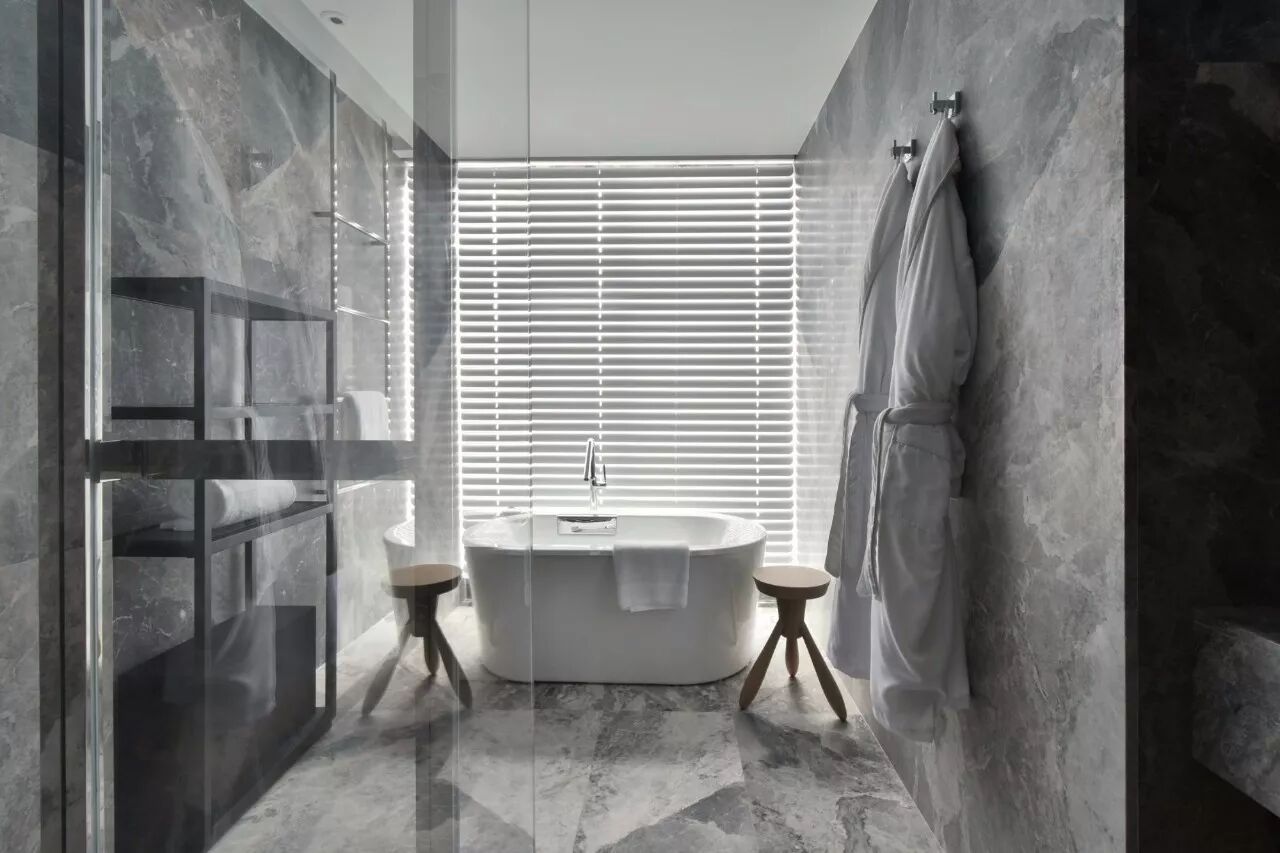 浴缸正对落地窗,如果是靠海的海景房还能在泡澡时看向无比大海。