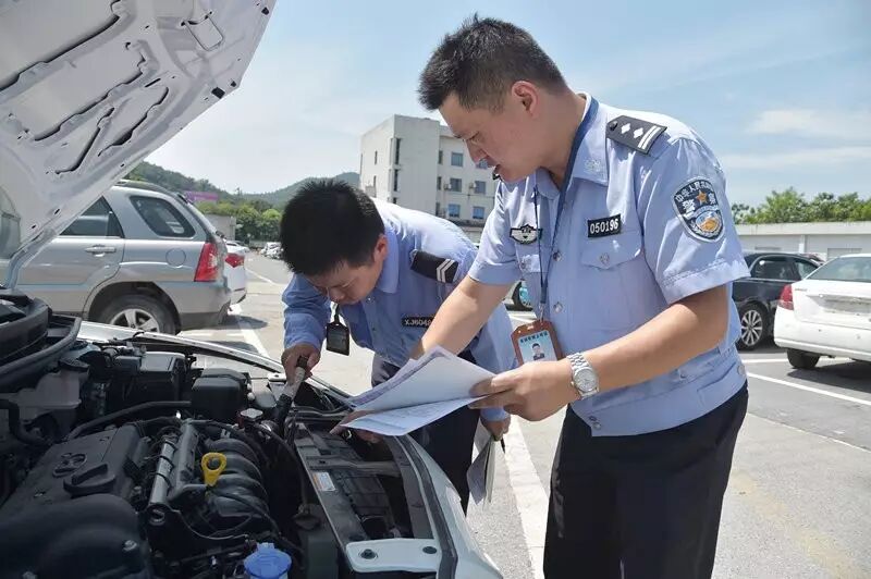 查验车辆,接受着烈日与车辆散热的双重考验