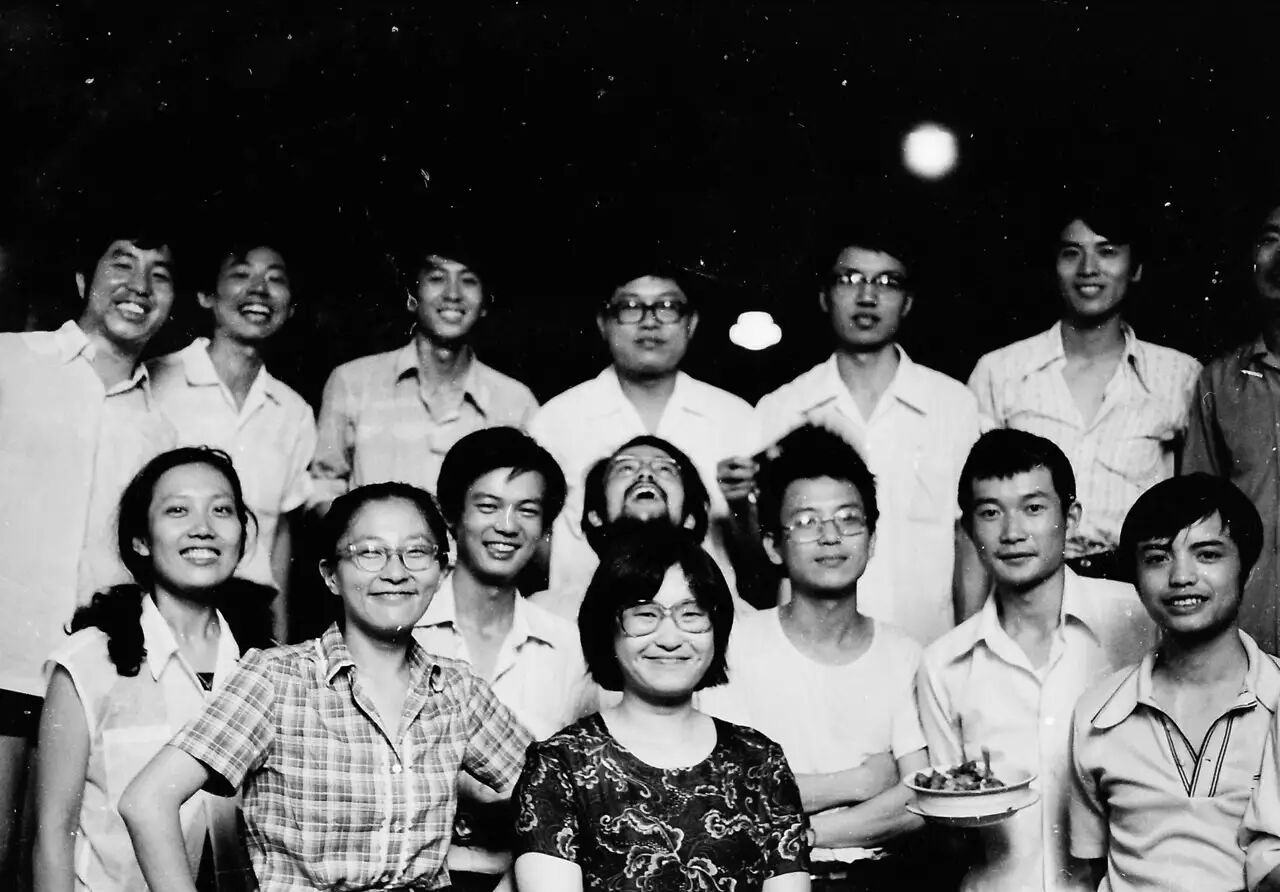 1981年 和大学同学们在一起(三排右二为陈其钢,二排中间仰天大笑的那个是瞿小松,二排右二为作曲家谭盾,一排正中是作曲家陈怡)