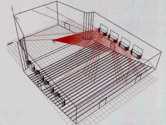 通过对房间的体量结构分析计算,针对高频2KHz~20KHz,中频500Hz~2KHz,低频20Hz ~ 500Hz进行组合吸收,根据各材料的吸声系数曲线把各个频段的吸声材料合理得布置到墙体地面和顶部结构上,使视听室混响时间达到最佳数值,并使其综合曲线结构区域平直,使各个频段吸声量均衡。