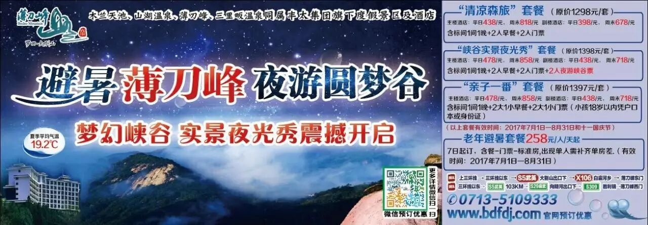 旅游连线:027-88186000(武汉办事处) 0713-5109333(薄刀峰景区)