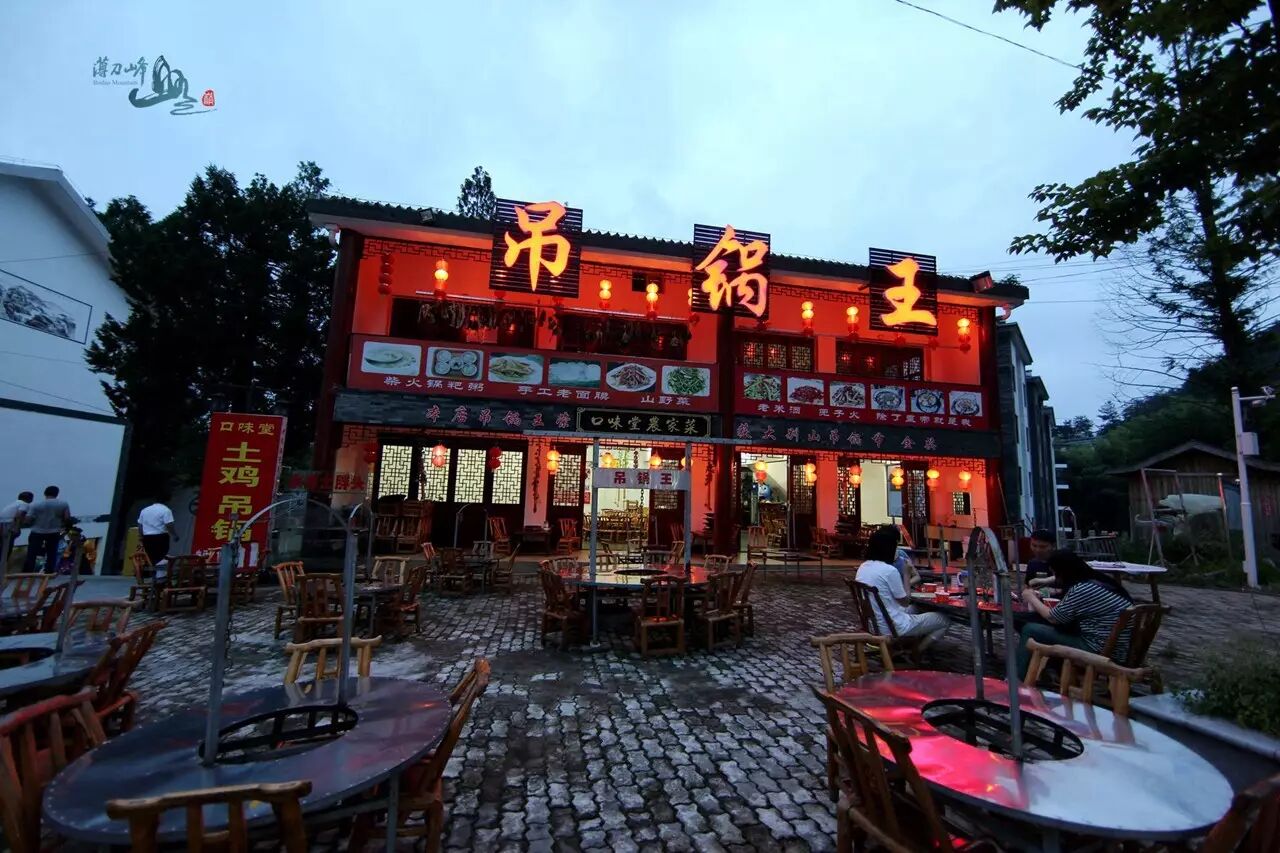 由于是依山而建,它没有平坦的石板路,而是一层又一层蜿蜒的台阶,就像镶嵌在山上。这里有各种特色土菜馆,还有罗田吊锅。