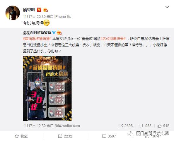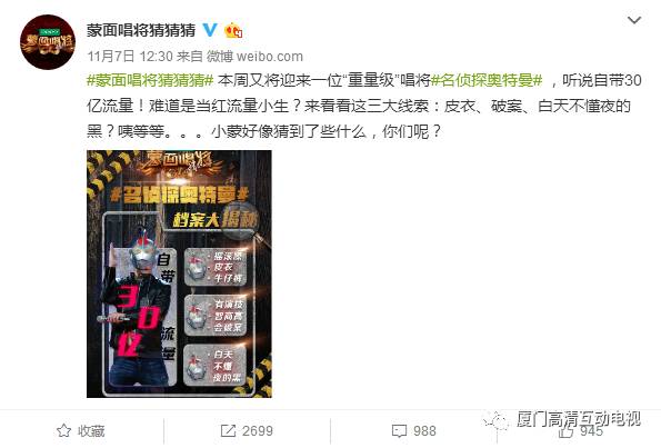 真相究竟如何,周日(11月12日)晚20:30锁定江苏卫视看《蒙面唱将猜猜猜》。