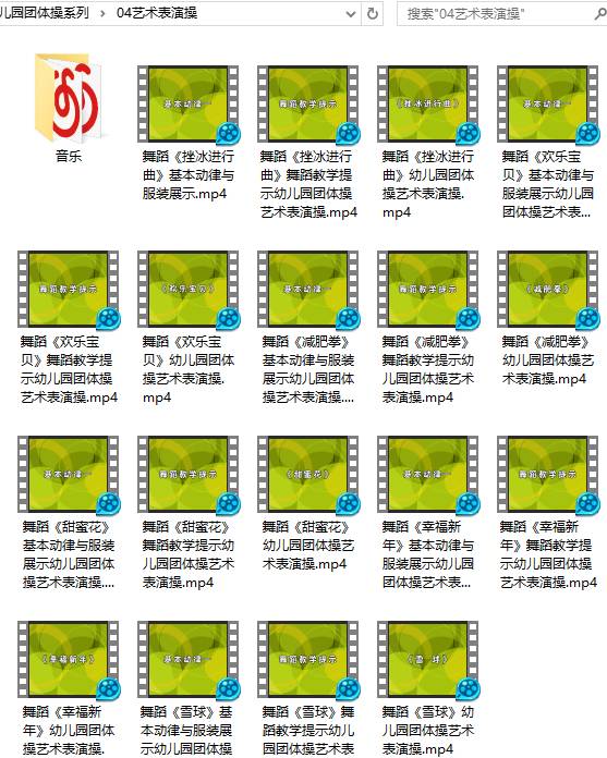 这是一套精选幼儿园律动、音乐、舞蹈大全(包括:手指操、快乐音乐律动、蒙氏律动儿歌、团体操、启蒙舞蹈、舞蹈训练等)共28g视频本资料以32GU盘存储