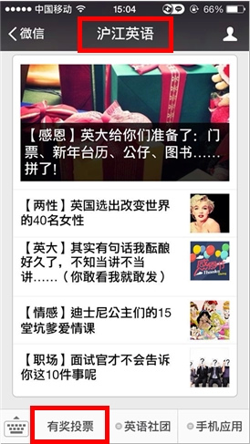 请点击“阅读原文”并在【大众媒体】分类中,为【沪江英语】投上你宝贵的n票吧!每个ID每天最多可投5票哟~