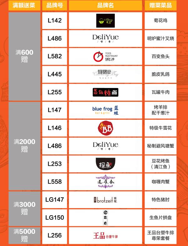 全场零售品牌当日累计消费满600、2000、3000、5000元,赠招牌菜品,最高赠王品台塑牛排尊荣套餐!