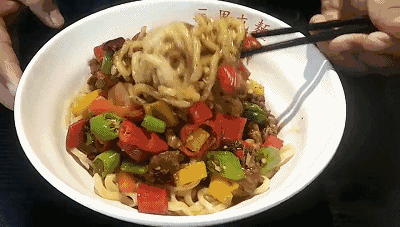 越拌越香,面香混着肥肠香,就连辣椒都是香酥酥的!温馨提示:面一定要拌开,一定要每一根面条都带着汤汁!