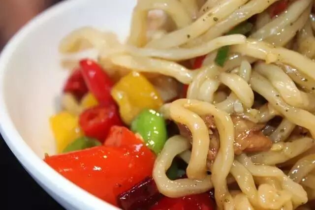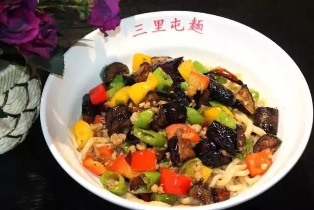 “三里屯面馆”在北京可谓是人气火爆~如今在咱大哈尔滨也开业啦~店内的茄子肉丁拌面,是三里屯面馆最热销的一款面!茄子是先过油的,在配上红绿彩椒段,颜色很是鲜艳好看!