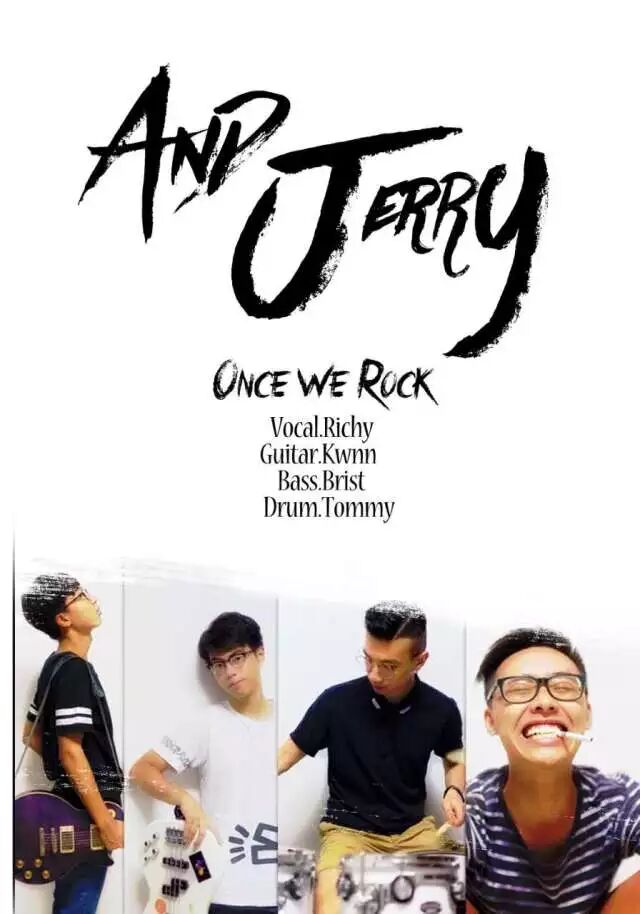我们是And Jerry,我们的Leader是Tommy,所以我们全称是Tom And Jerry,大家好,名字是不是非常朋克? 我们由三个讲白话的和一个听白话的凑成,衷心直来直去的Punk和Solo成篇的Rock,偶尔也会来两段 摇摆不定的小Jazz。 我们有两块九成熟的西冷和两块五成熟的沙朗,第一次演出和最后一次演出中间不知道会不会有第二场。这是一个迟到的乐队。 我们是And Jerry,玩的音乐比猫抓老鼠还要直接。本周Main cover:反光镜/绿日,等你一起Punk。