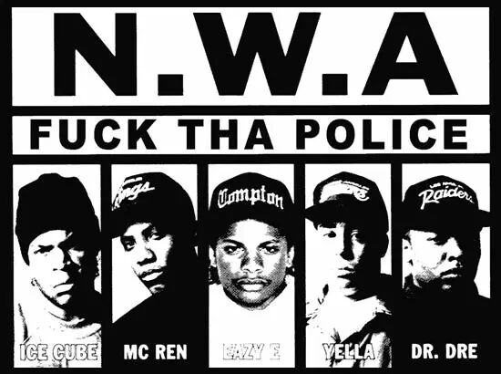 1989年2月,N.W.A乐队推出专辑《Straightn Outta Compton》,这张制作费仅8000元的饶舌唱片中包含了大量街头语言,泼辣生动,风靡一时。该唱片遭受了限制电台播放的命运,但至1989年底,该唱片销量仍高达1亿张。