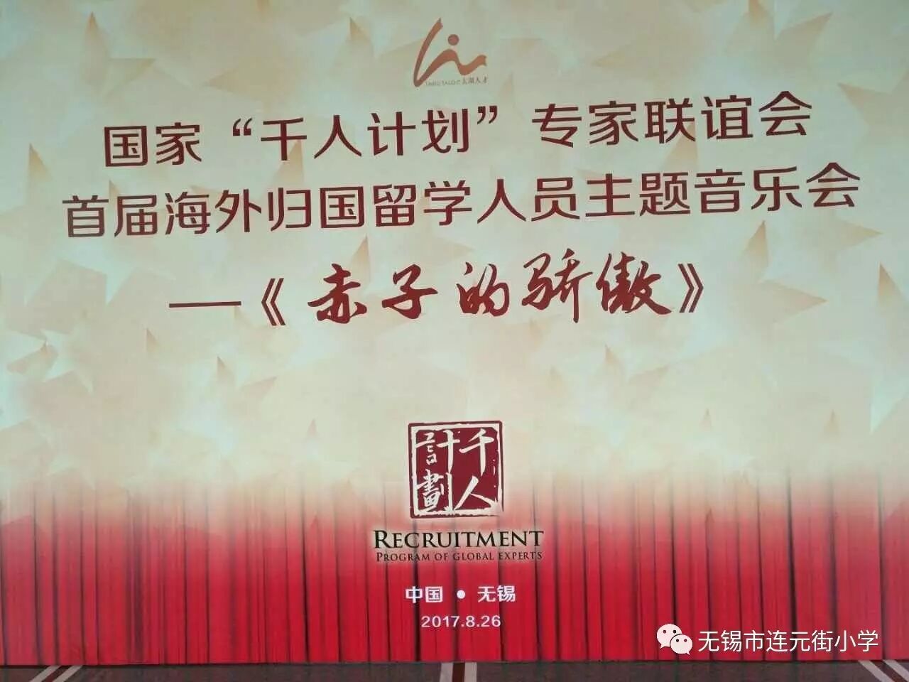 8月26日晚,由国家“千人计划”专家联谊会主办的首届海外归国留学人员主题音乐会——《赤子的骄傲》在无锡广电演播厅内举行。连小“邓建栋二胡艺术学校”的二胡娃们有幸闪亮登场,与著名二胡演奏家邓建栋同台献艺,演奏了二胡名曲《光明行》。