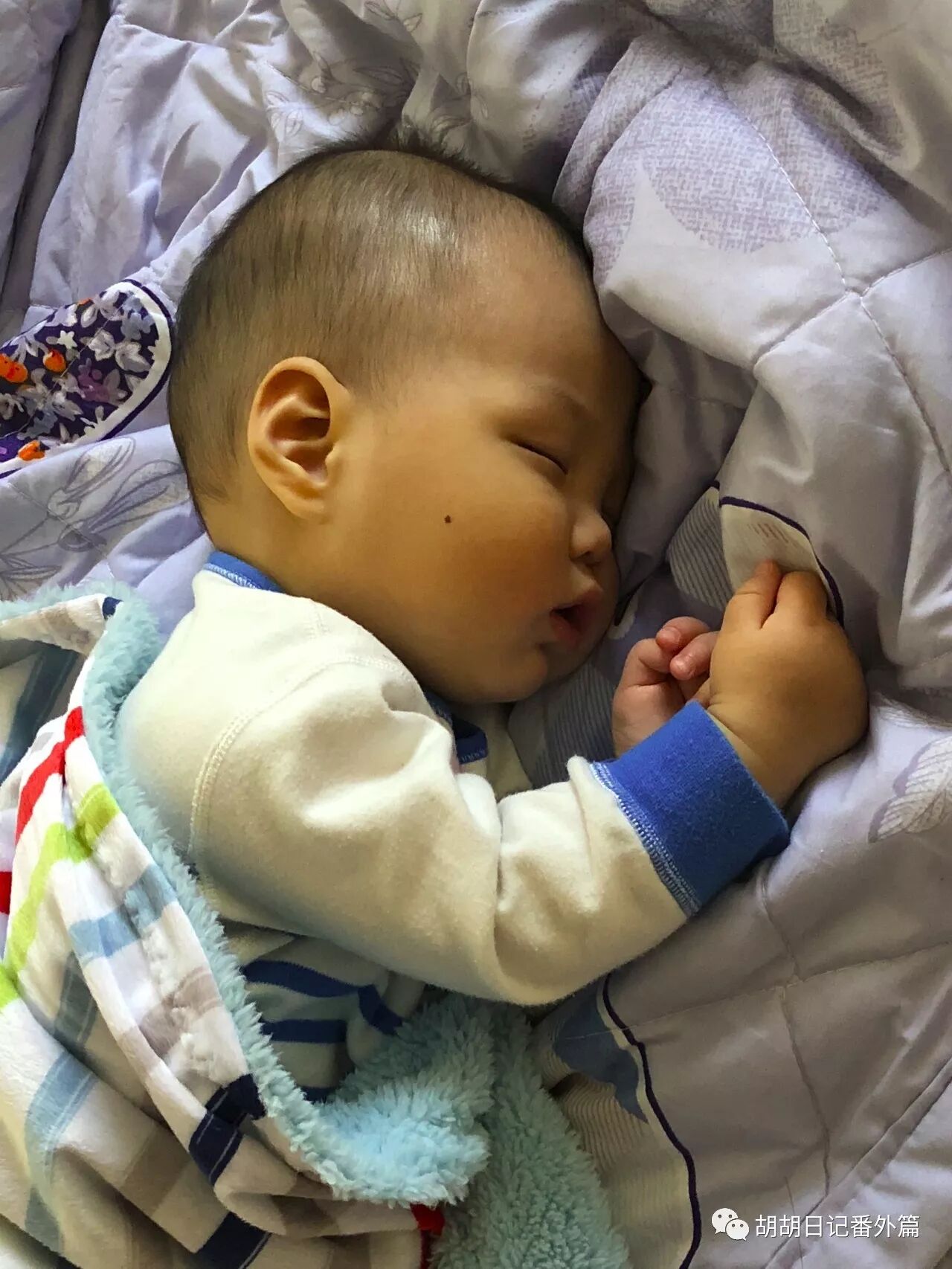 紧接着,就是我临睡前,发现胡胡好像脑袋出汗了,头贴着被褥的部分都湿了(平时也从来没有这样过啊)。于是紧急冬季睡袋替换夏季睡袋,这才又让他再次安心入眠。可是夜里还是一直哭哭醒醒(比平时夜里的次数多了两三次,一般一夜就两回以下),我以为他是要奶吃,于是儿一哭,妈就给,全然没想到他当下已经急疹中了,被折腾的已然各种不舒服了,怪我