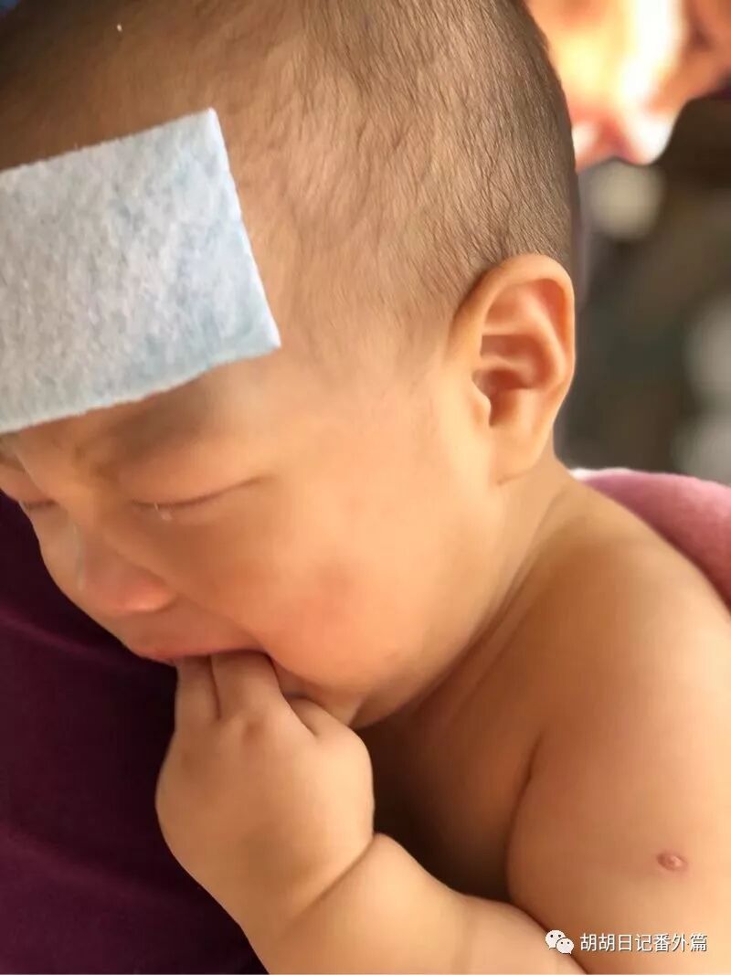 我和菲菲联系上了,咨询了一些相关的退烧方法,给胡胡贴上了宝哥哥的退热贴,穿上了开衫衣服,套上了袜子,喝上了开水。