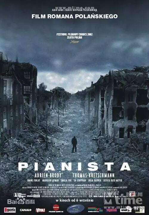 10、《The Pianist》(钢琴家,拍摄于2001年):《钢琴家》是2002年上映的一部电影,该片是由罗曼·波兰斯基执导,阿德里安·布洛迪、艾米丽雅·福克斯、米乔·赞布罗斯基、爱德·斯托帕德等主演该片根据波兰犹太作曲家和钢琴家席皮尔曼的自传改编,描写了一个波兰犹太钢琴家在二战期间艰难生存的故事 。近年来最有影响的关于波兰钢琴家Szpilman的传记电影;关于在虐待、、压抑、恐怖的战争环境下人的生存境遇的佳作;当然肖邦的音乐在里面起了画龙点睛的效果。