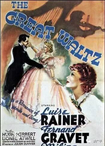 2、《The Greet Waltz》(翠堤春晓)《翠提春晓》是1938年上映的美国电影,由朱利恩·杜维威尔,维克多·弗莱明 导演,路易丝·赖纳,Fernand Gravey,米莉莎·科犹等人主演。)圆舞曲之王约翰-施特劳斯的传记片,这部电影得到的居然是第12届奥斯卡最佳摄影奖,可见影片风光优美无限了,音乐当然是不错的,但我觉得对约翰-施特劳斯的性格刻画却没有用力。我看过一些关于约翰-施特劳斯的传记的文字,有许多出彩的地方,影片都没有体现,遗憾。但影片的结尾我印象深刻:约翰-施特劳斯老态龙钟的时候,放眼国王的窗外,大草地上有无数的粉丝为他欢呼,这也许是作为一个音乐家最大的欣慰了!他是音乐王国里的国王,死而无憾。