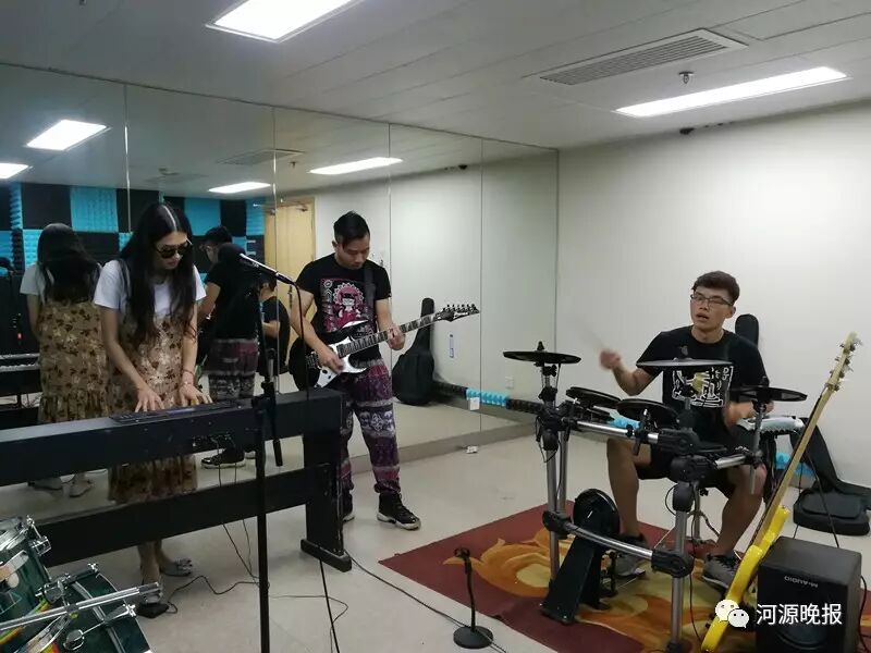 必须是欢快的、正能量的、朗朗上口的,但这对于一直创作校园青春歌曲的乐队来说真的太难了。“从四五月开始,两个多月时间,每个人都参与进来,不断地修改。除了周末练习时间,工作日也会通过视频不断讨论。”经过这样紧张的创作,这首定名为《这里是河源》的歌曲终于在6月24日晚初录出来了。