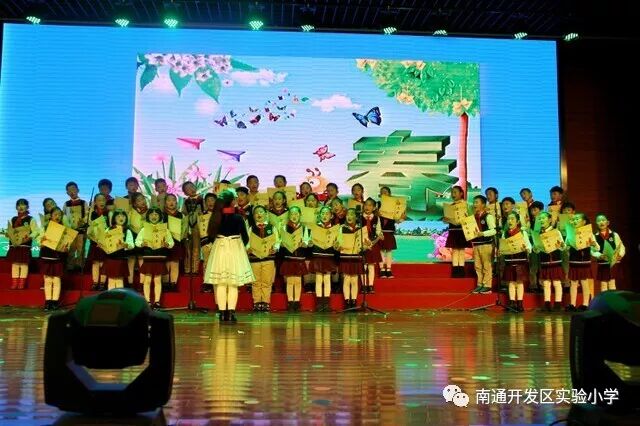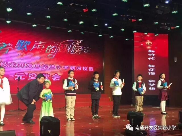 2017年12月29日下午,在即将告别硕果累累的2017、迎来充满希望的2018的美好时刻,南通开发区实验小学教育集团新河校区在品真楼报告厅举行了元旦歌会。本次歌会以“乘着歌声的翅膀”为主题,以合唱形式进行。经过年级部初赛,共有19个班级成功晋级决赛。经过评委现场打分,共评选出6个“最佳指挥奖”、7个“最具潜力奖”、6个“最佳表演奖”、6个“最佳演唱奖”。校区领导为获奖班级和学生颁奖。实小教育集团总校长赵建华发表了热情洋溢的新年贺词。演出期间,除了500余人在现场观看了演出,其他班级则通过现场直播的方式在各班教室里同步收看了决赛盛况。