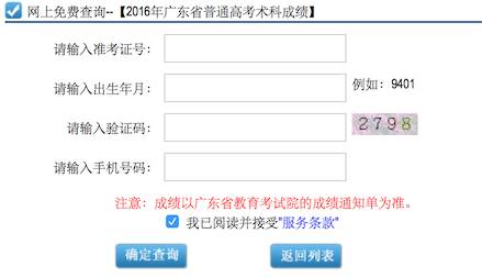考生可登录广东考试服务网,点击进入相应查询栏目,输入准考证号+4位出生年月即可查询高考术科考试成绩。