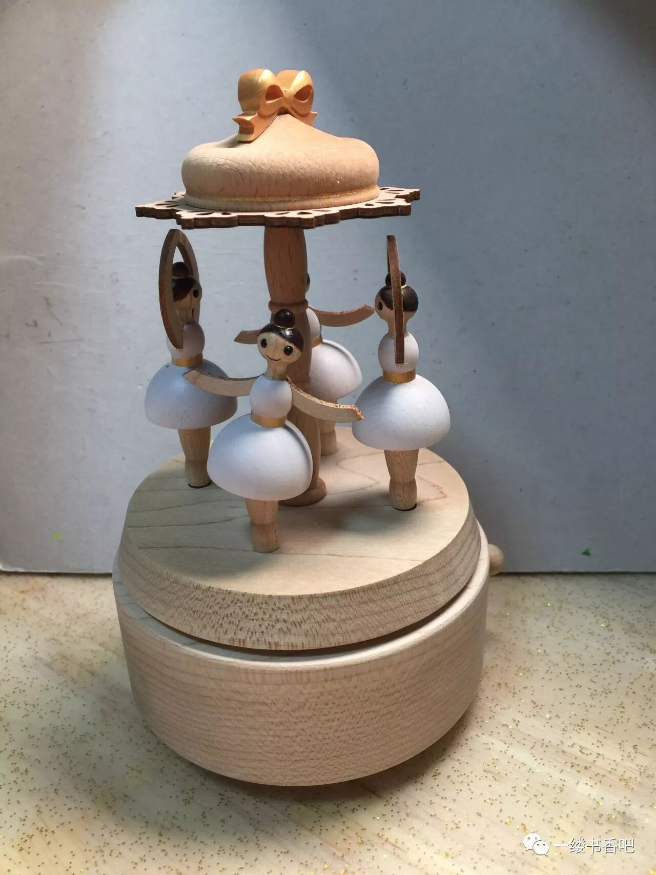 再往下看,你会看见有四个不同舞姿的芭蕾舞女孩正随着音乐声翩翩起舞,使整个音乐盒看上去栩栩如生。