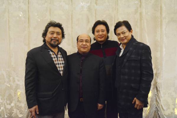 “中国三大男高音”是由戴玉强、莫华伦、魏松和西安音乐会出品人郭建兰(摄影/周炜)
