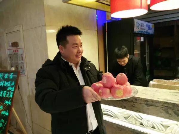 科教网创始人李伟伟为庆功宴呈上“白水苹果” 摄影/周炜