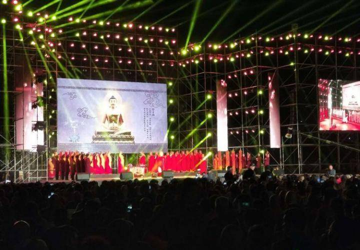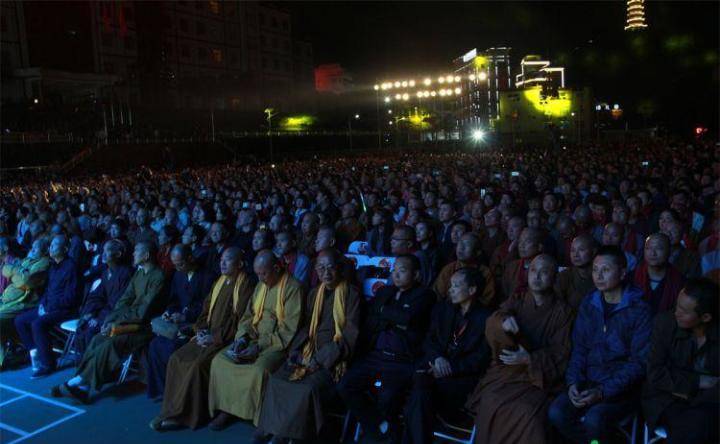 场内五千多观众现场聆听如梦如幻的佛乐清音,音乐会时而动感,时而引人沉醉,欢乐的音符跳跃在色彩绚烂的灯光中,音乐与场景完美融合。