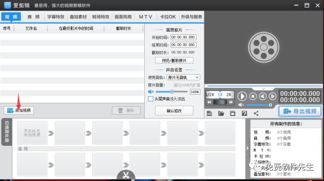 1.在软件主界面顶部点击“视频”选项卡,在视频列表下方点击“添加视频”按钮,在弹出的文件选择框添加视频片段。
