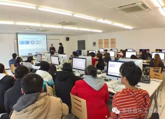 我系全体师生参与讲座,由16级音乐设计与制作专业学生陶意扬进行现场实时翻译!