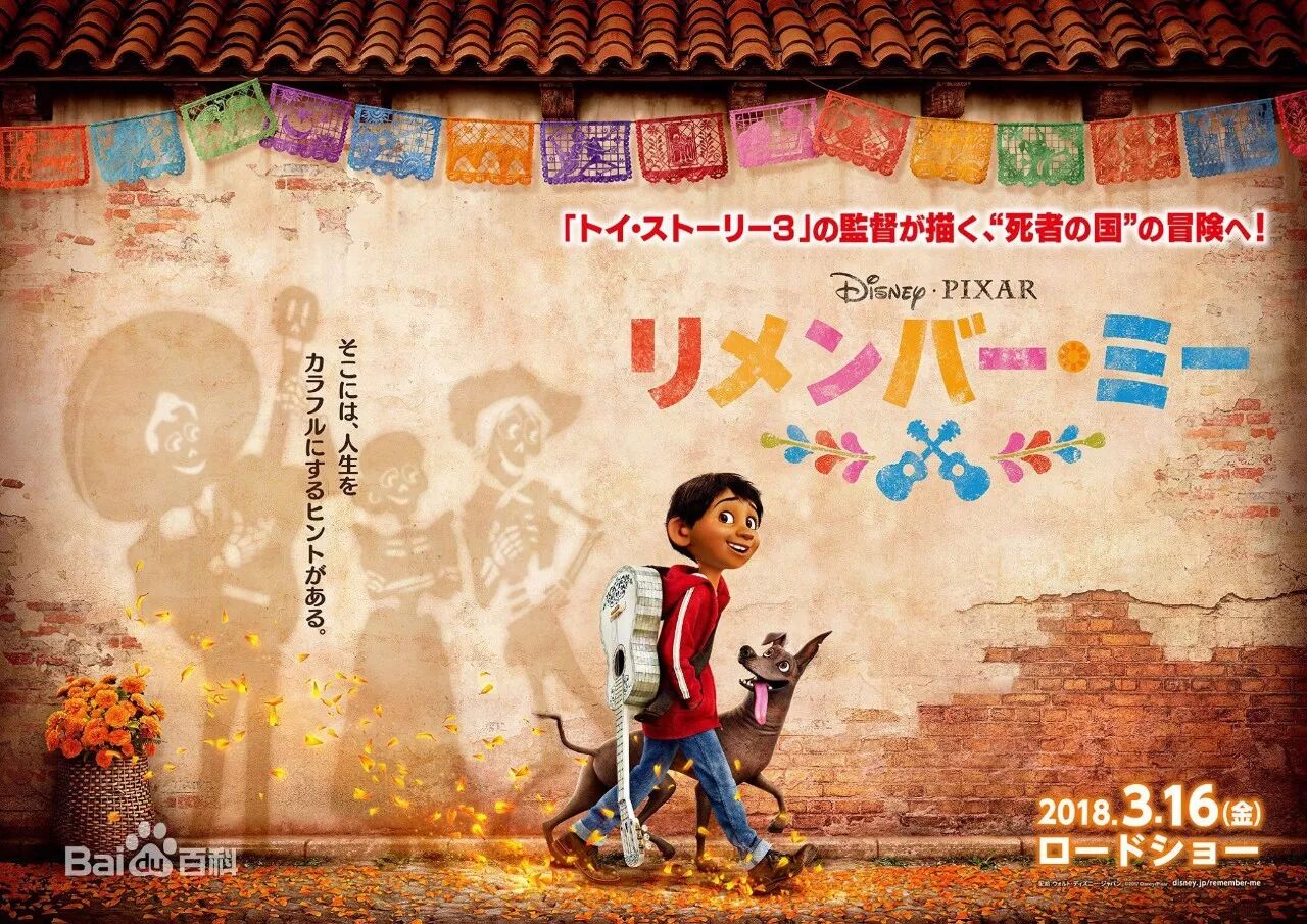 《寻梦环游记》是皮克斯动画工作室的第19部动画长片,由华特·迪士尼电影工作室、皮克斯动画工作室联合出品,李·昂克里奇、阿德里安.莫利纳执导,安东尼·冈萨雷斯、本杰明·布拉特、盖尔·加西亚·贝纳尔、蕾妮·维克多等参与配音。该片的灵感源于墨西哥亡灵节,讲述了热爱音乐的小男孩米格和落魄乐手埃克托在五彩斑斓的神秘世界开启了一段奇妙冒险旅程的故事。