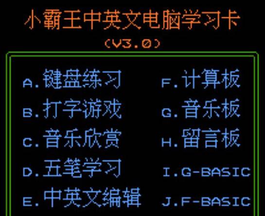 而小霸王学习机上的 Basic 语言: G-Basic ,其中 “G” 代表游戏(Game)。 F-Basic 则是浮点语言,和游戏无关小朋友们对之兴趣不大。