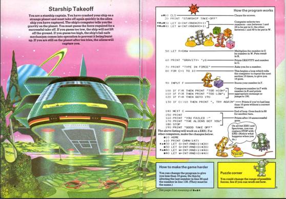 1982年英国著名的儿童读物出版社 Usborne Publishing 出版的《太空电脑游戏》(Computerspacegames)中所刊载的代码列表。