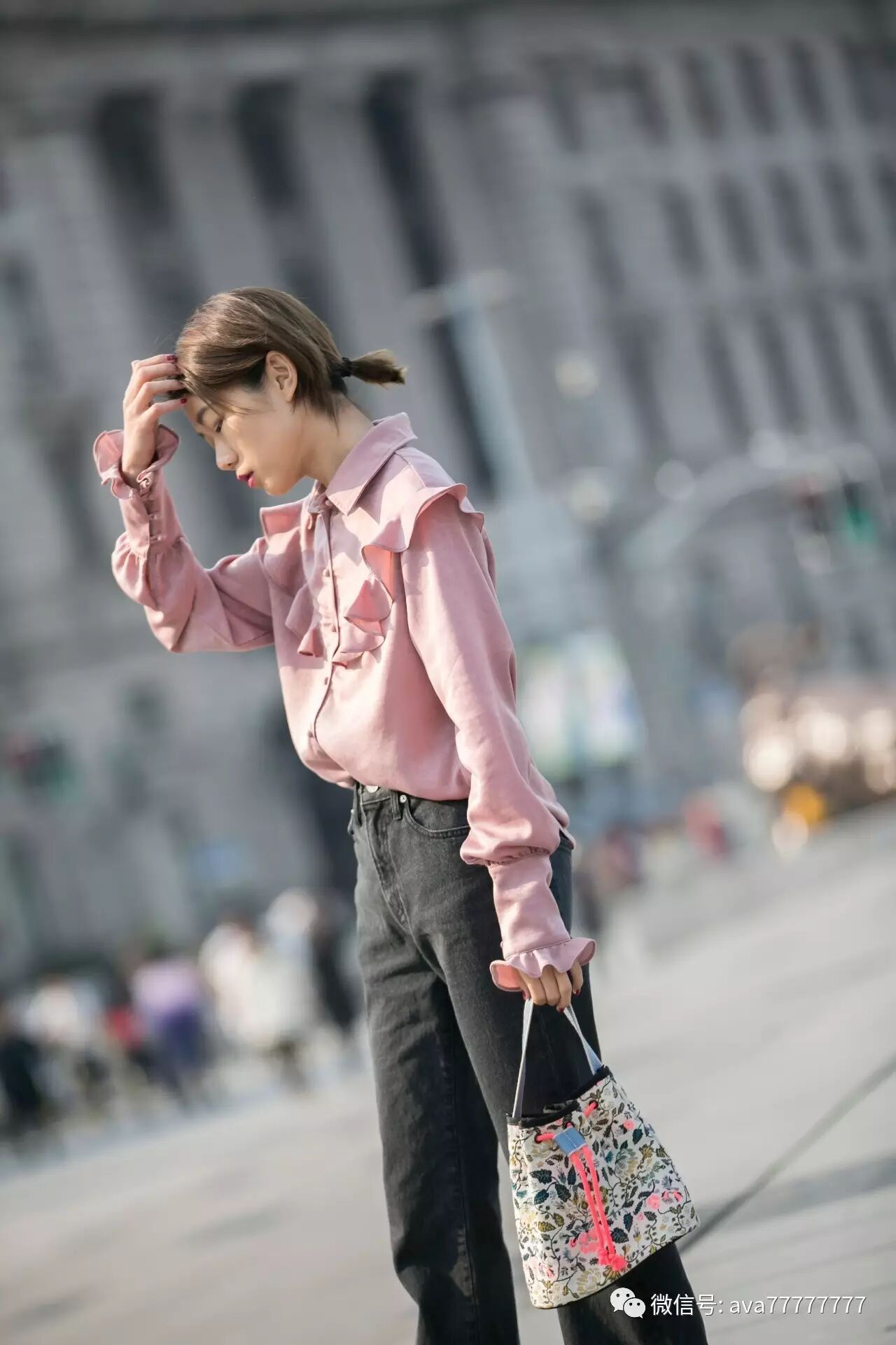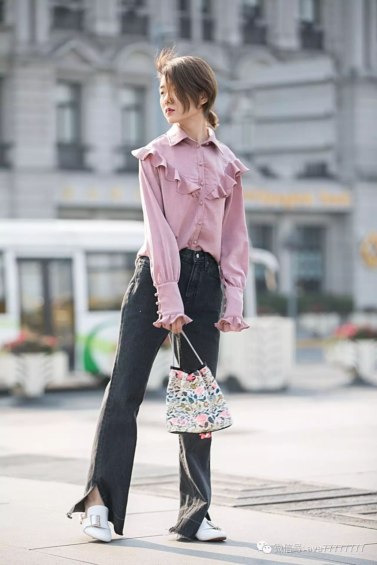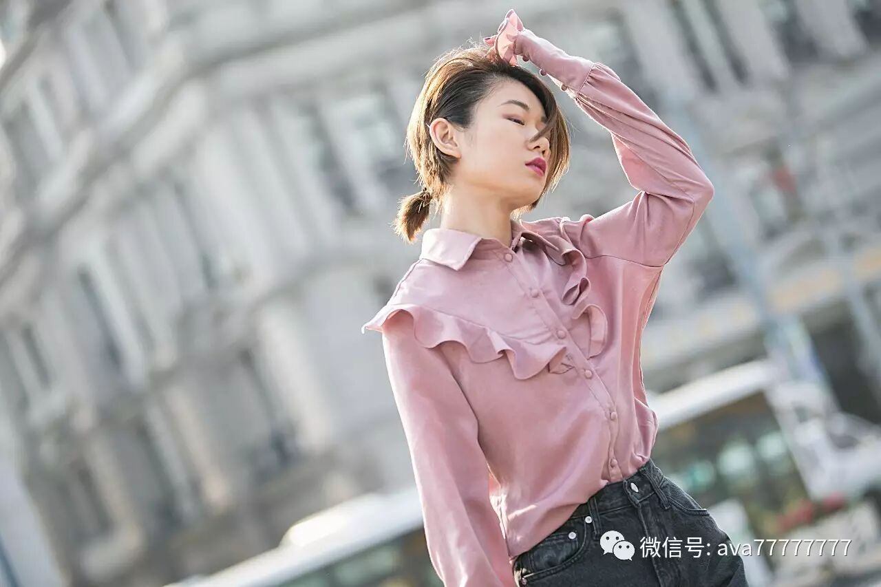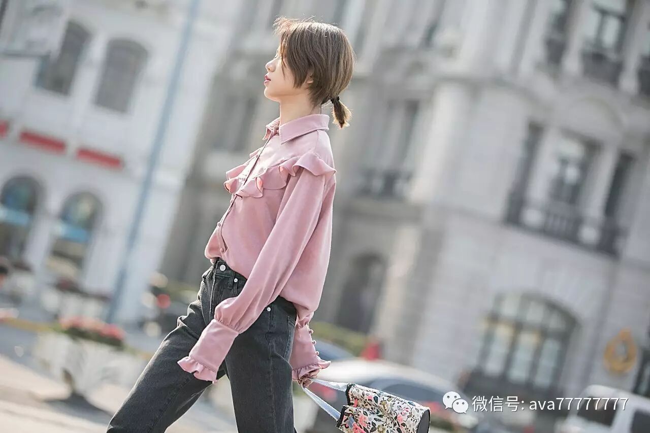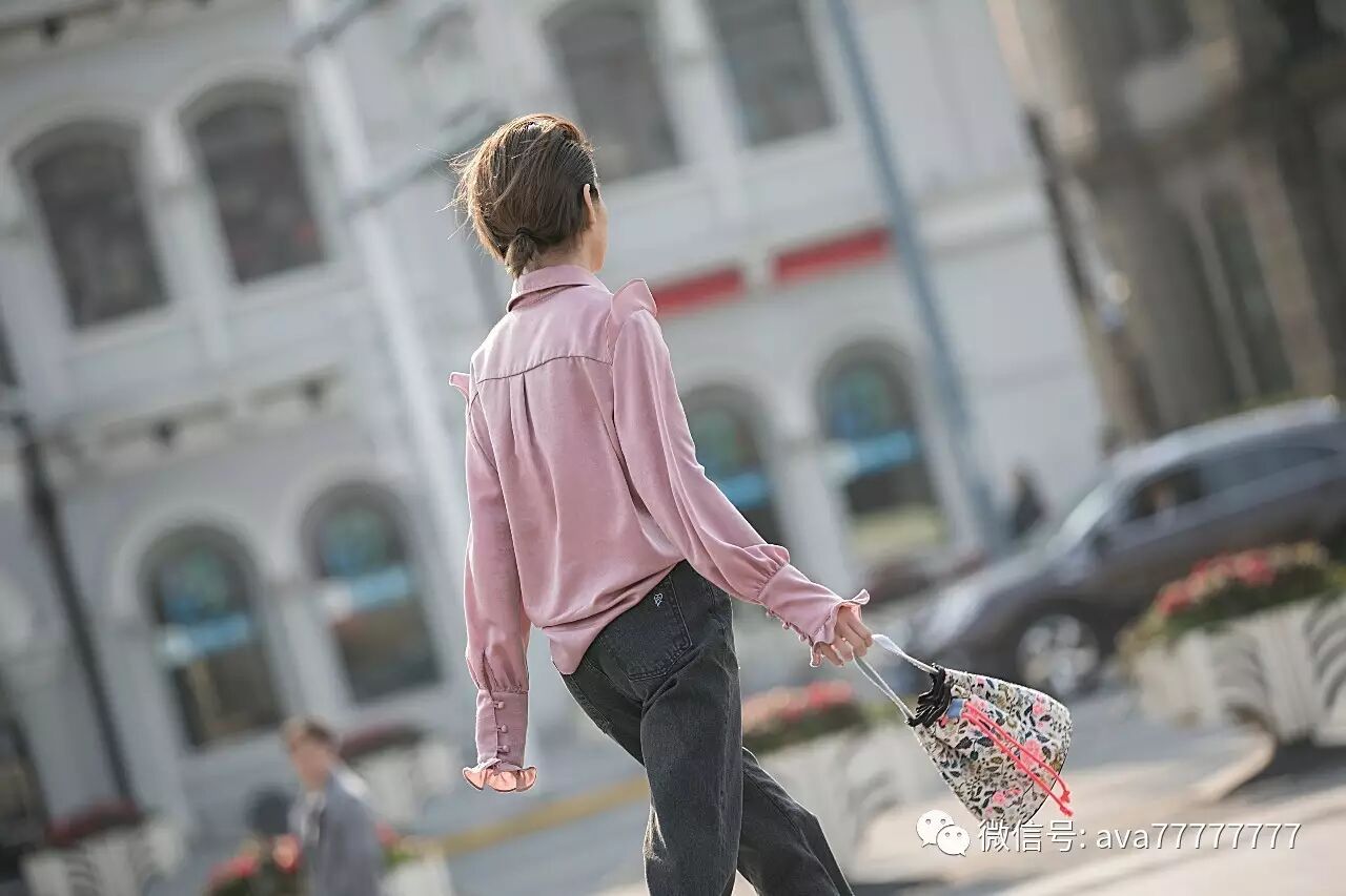 光泽感的面料有一丝复古feel,和现代感的城市气息相碰撞,加上荷叶边流畅的线条感让粉色也可以美与帅兼得,谁说穿粉色就一定是萝莉小公举?我非要酷给你看~