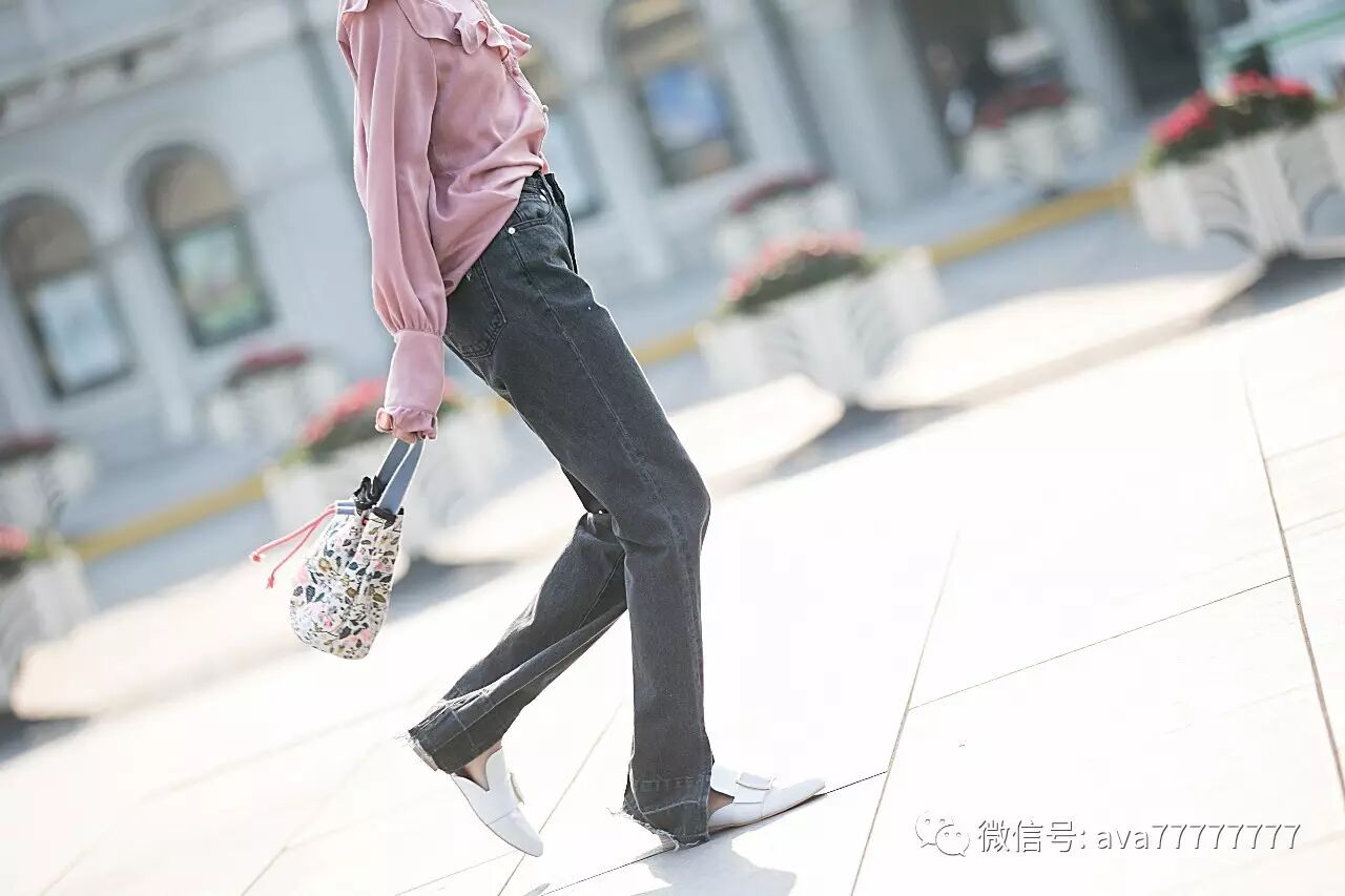 get了当下敲火的开叉元素,做旧的水洗色随性又洒脱,显瘦的同时视觉上感觉胸以下全是腿~