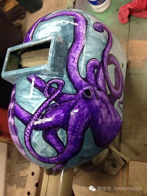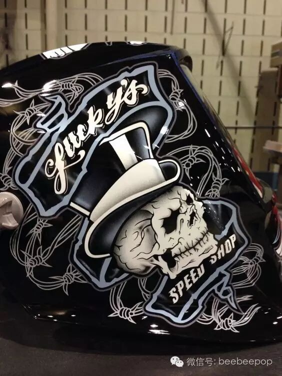 焊工的衣服往往是灰扑扑的,但头盔可以常擦常新。所以,美国焊工最流行的文化,就是对头盔的改装,以及在涂装上的各种创意。
