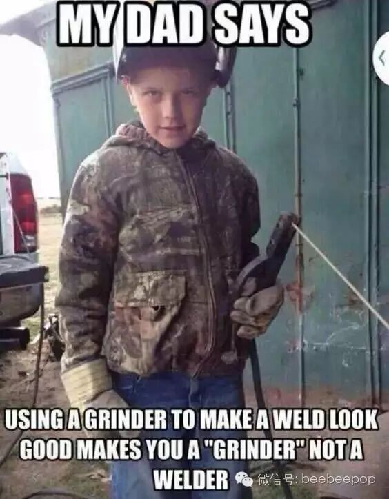 ▲我爸爸说,如果你要用抛光机去让你焊出来的东西变得更漂亮,那你只是一个“抛光工”而不是一个牛逼的焊工!
