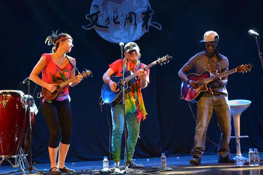 阔别中国30多年的David重返这个国度,带着多民族乐队Yampapaya tribe,为观众送上了《In the morning》《Three little brids》《Rhythm of ocean》等作品。这些作品的名字听着歌名有点乡村气息、有点小清新。但是David和Yampapaya tribe乐队确实是在演绎摇滚音乐。这些风格的摇滚,跟他们的经历息息相关。