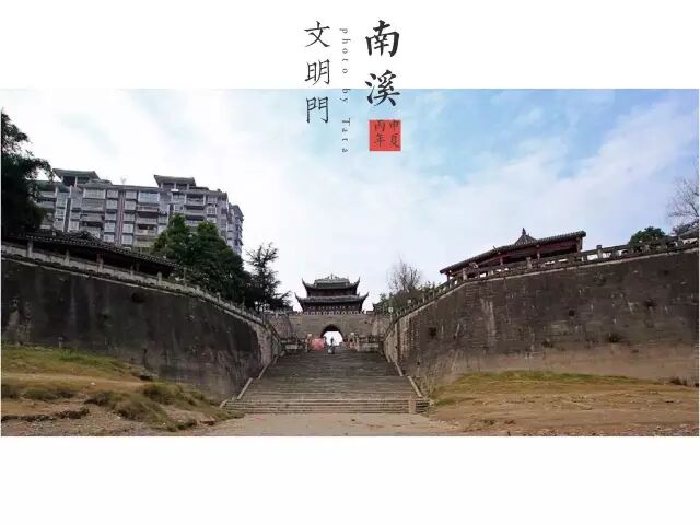 在潋滟山水里,终于走到了文明门。当我站于那62级台阶之下,仰头望着这道南溪保存最为完整的古城门时,它在蓝天之下磅礴的气势,让我必须得说:文明门,无论再过千百年,无论南溪有多少高楼拔地而起,你才是南溪,永远的地标!