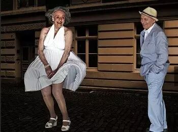 84岁的INGEBORG GIOLBASS和88岁的ERICH ENDLEIN扮成电影《七年之痒》中的人物。