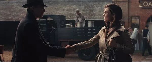 影片里很多对比都是通过时装和音乐来实现的。比如一边是被热浪炙烤的战场里穿着Trench Coat的士兵,而另一边是身穿剪裁精致马甲的Thomas Burberry,时刻绕颈的裁缝标尺,Hold on through Heaven and Hell, hold onto each other歌词从远处飘来,他只能通过自己亲手设计的这些衣服和士兵们穿透时空、通过音乐来对话